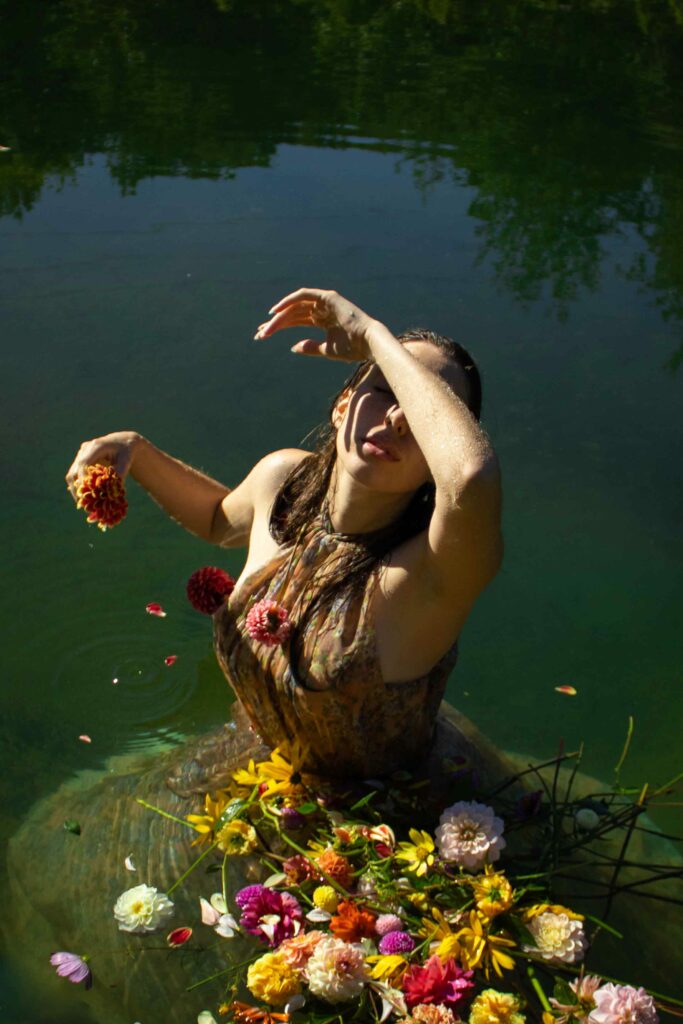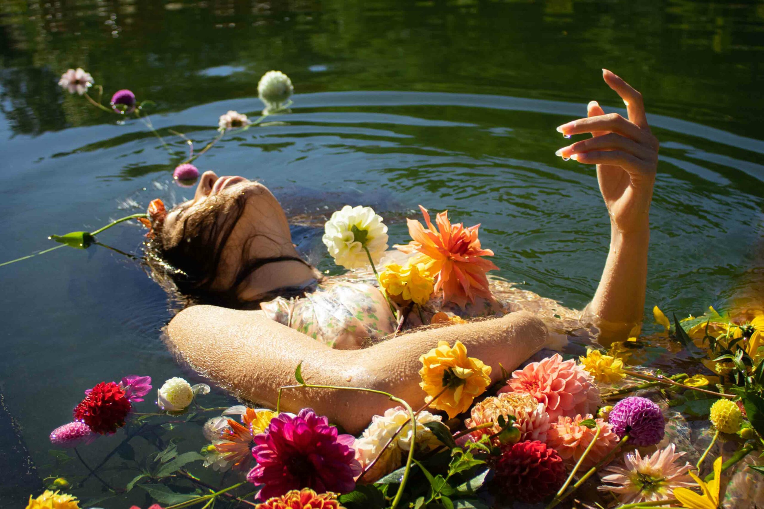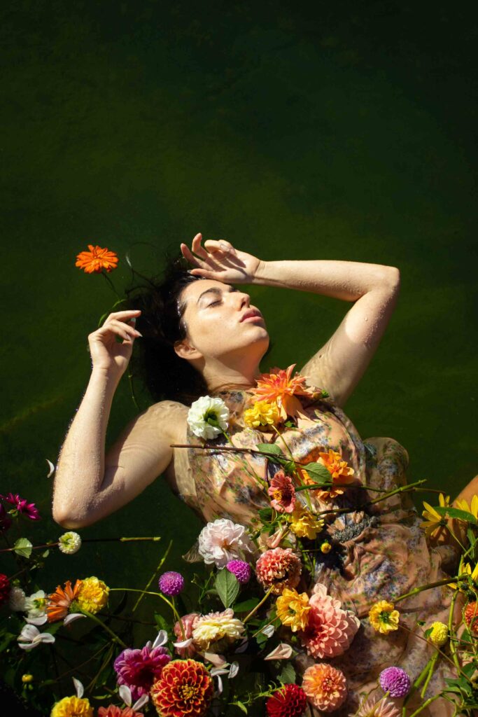 ophelia fotografía ✦ 2023 Ophelia es un proyecto colaborativo con Inés Woldin como modelo, Lur Garden prestándonos su espacio y Paname Floral Studio aportando su selección de flores.